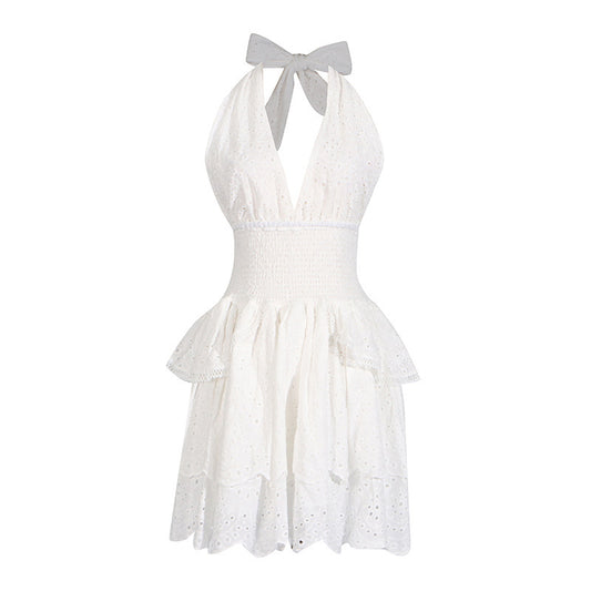 Autumn New Fashion Deep V-neck Sleeveless Halter High Waist Slimming Dress Women